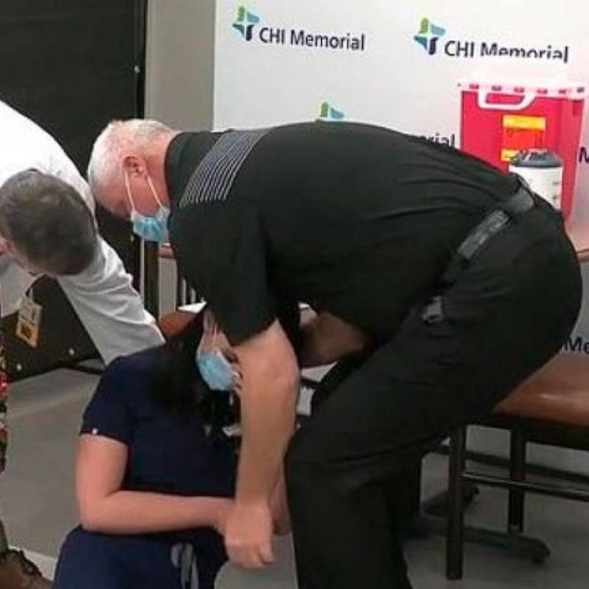 El enfermero abrazó al paciente con Covid-19 para poder calmarlo y ayudarlo a usar el tanque de oxígeno