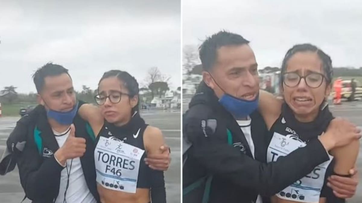 Conmovida por haber alcanzado el récord que la calificaría para los Juegos Olímpicos, las fotos de Daniela Torres llegando a la meta la se hicieron virales