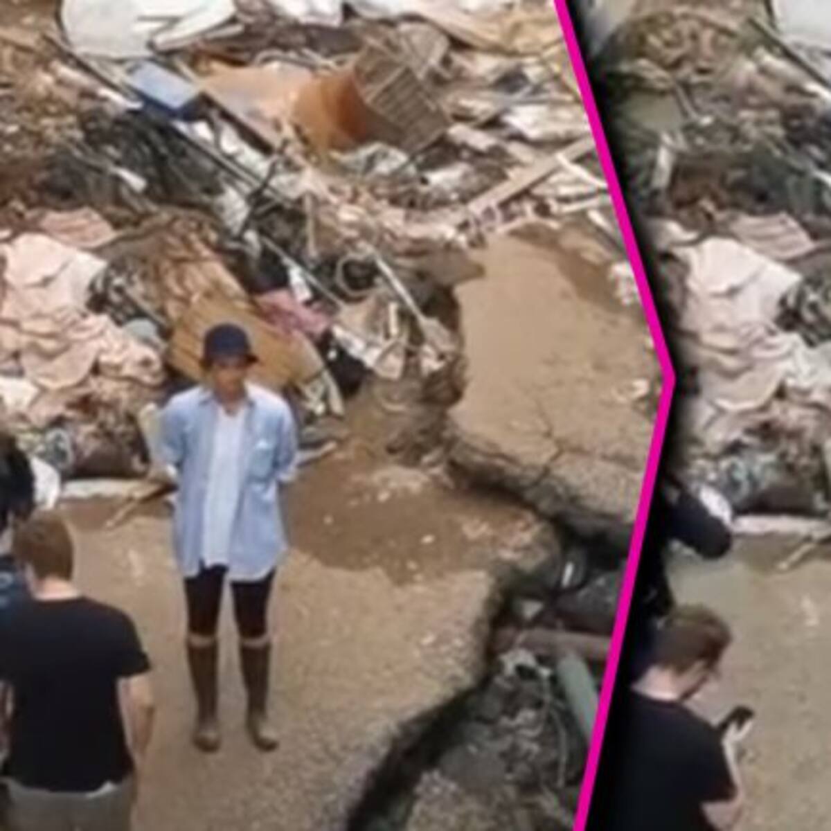 El inesperado momento en dónde resbala y cae al suelo quedó grabado en un clip
