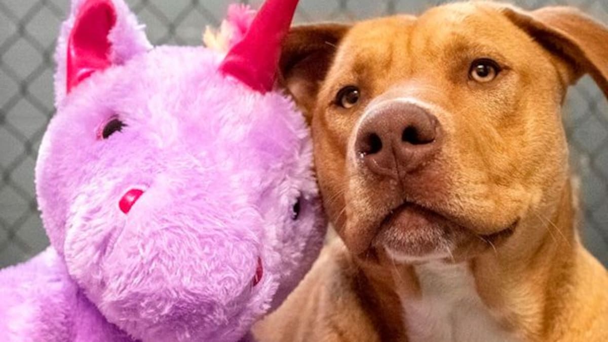 Perrito callejero robó unicornio de peluche tantas veces que tuvieron que comprárselo