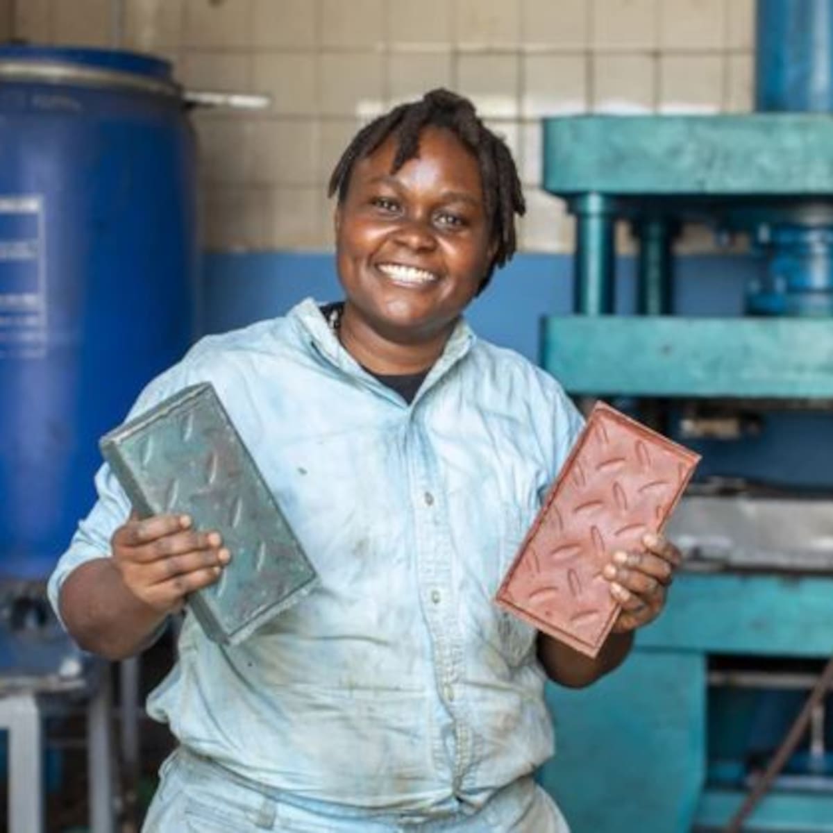 Para sorpresa de muchos, los ladrillos que ella fabrica son más fuertes que el concreto convencional