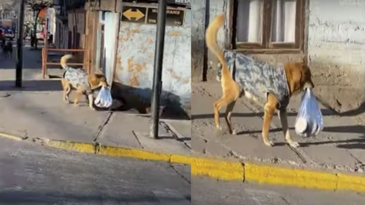 Perrito se vuelve viral en las redes sociales luego de que fue visto llevando una bolsa de pan a su casa