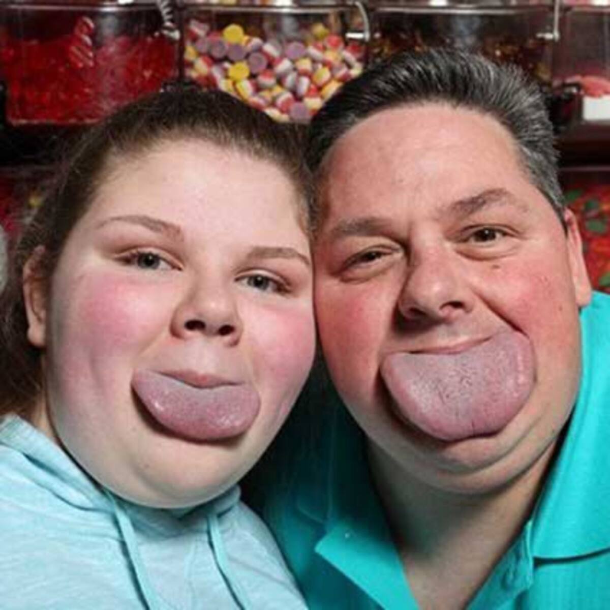 La lengua de Byron mide 8.6 centímetros de ancho, la de Emily mide 7.3 centímetros.