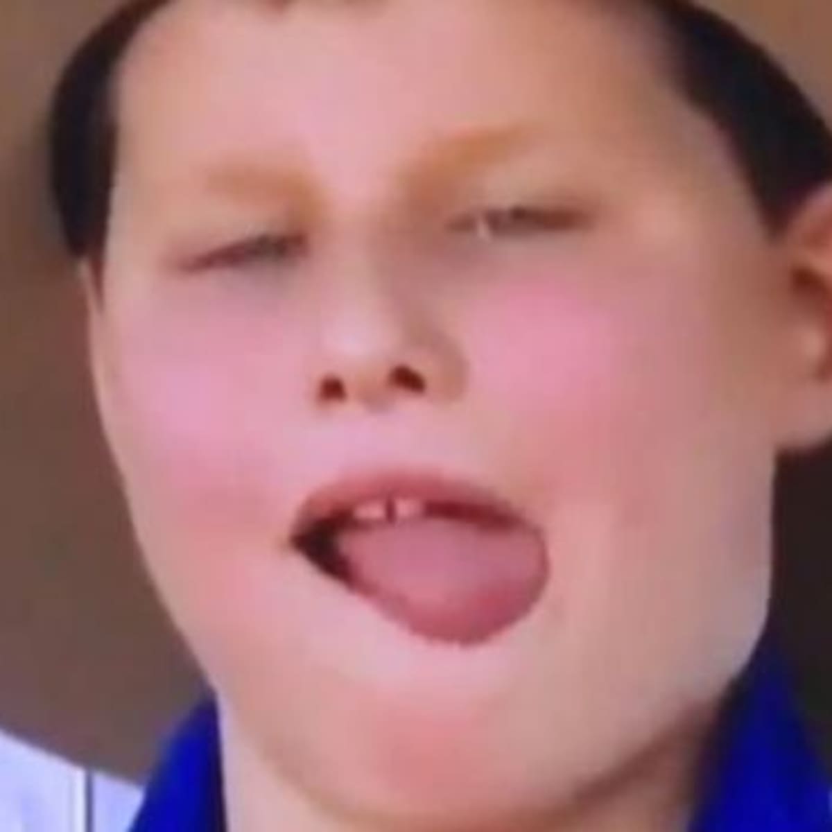 El niño apareció junto a sus padres en una entrevista de televisión y de pronto saca la lengua para alcanzar dos moscas que se pararon cerca de su boca para lograr comérselas