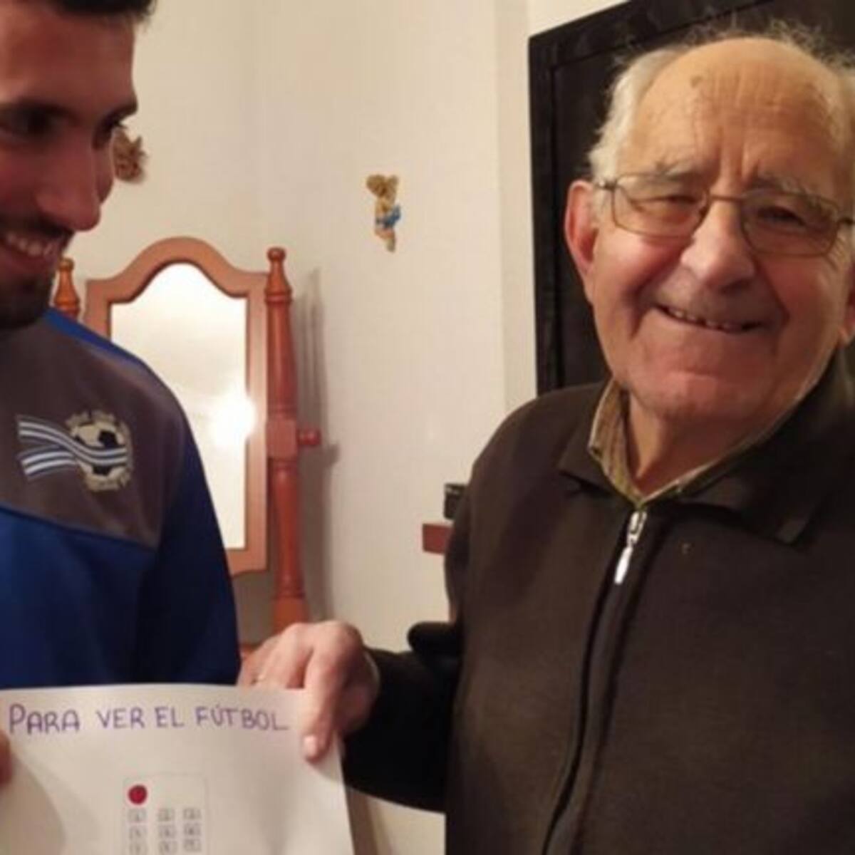 Un joven ayudó a su abuelito que no sabe usar el control de la televisión y le dibujó un control remoto con las instrucciones de cómo podía ver el fútbol o cambiar de canal