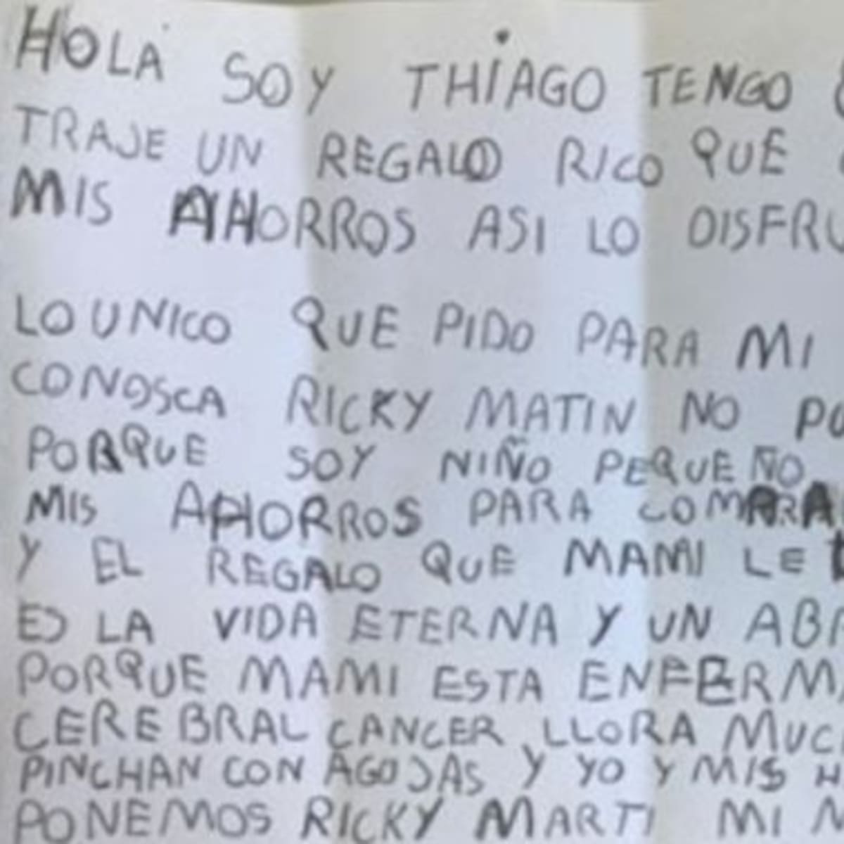 Un niño en Argentina mandó una carta a un programa de televisión para que lo contemplaran en el concurso para conocer a Ricky Martin, incluso mandó sus ahorros
