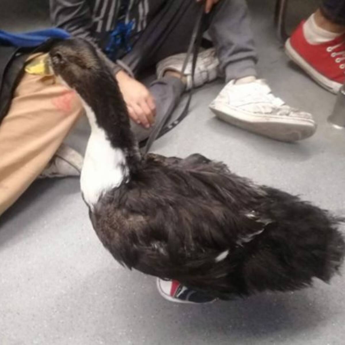 En redes sociales han comenzado a circular estas imágenes de una hermosa patita andando en el metro de la Ciudad de México con tenis, cosa que fue adorable para los internautas