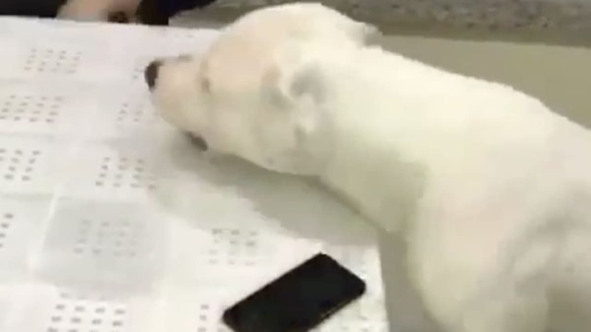 En redes sociales circula el video de un perro que cuida el celular de su amo. No deja que la novia lo agarre