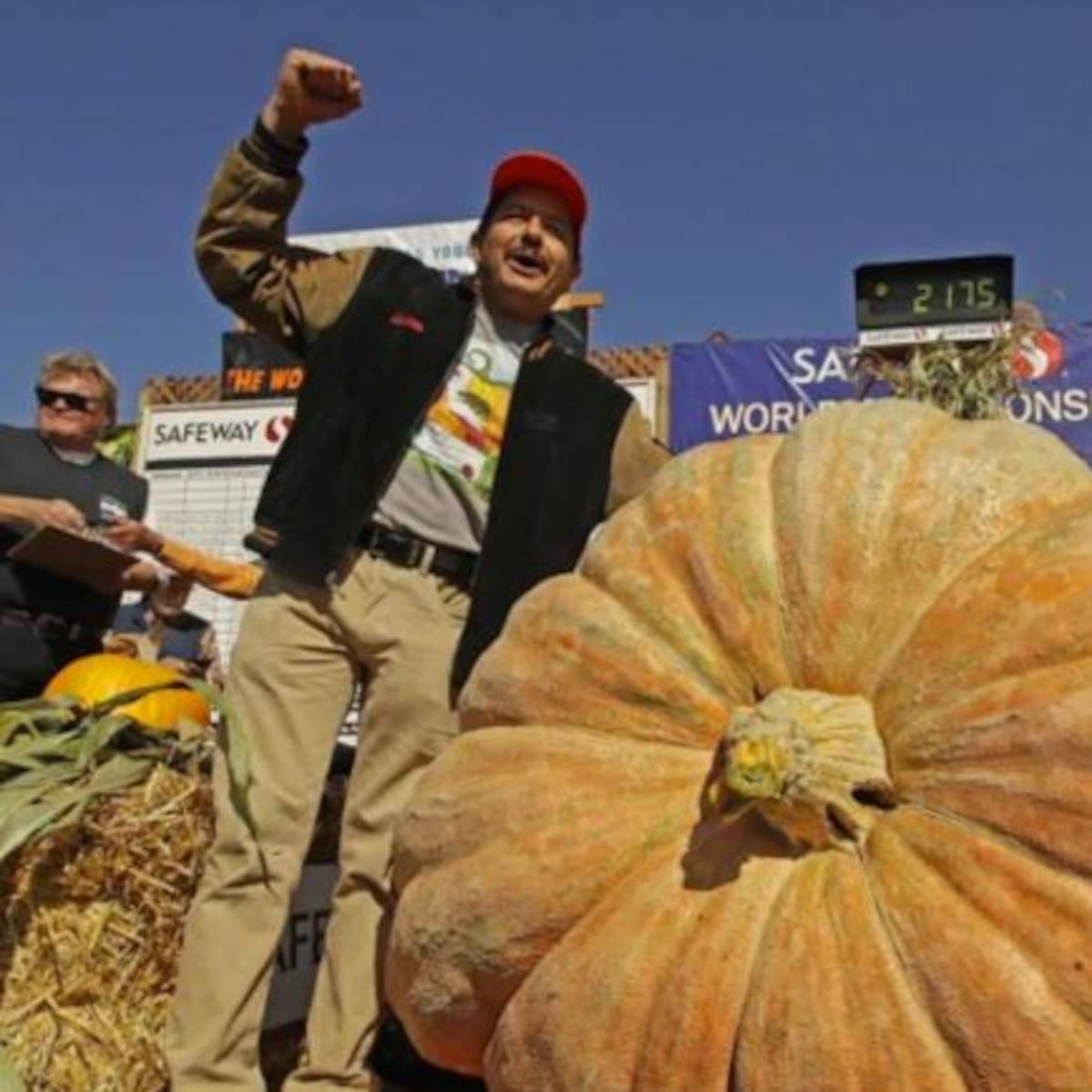Leonardo Ureña se llevó el primer lugar del concurso anual de la calabaza más pesada y él llevó la calabaza más grande