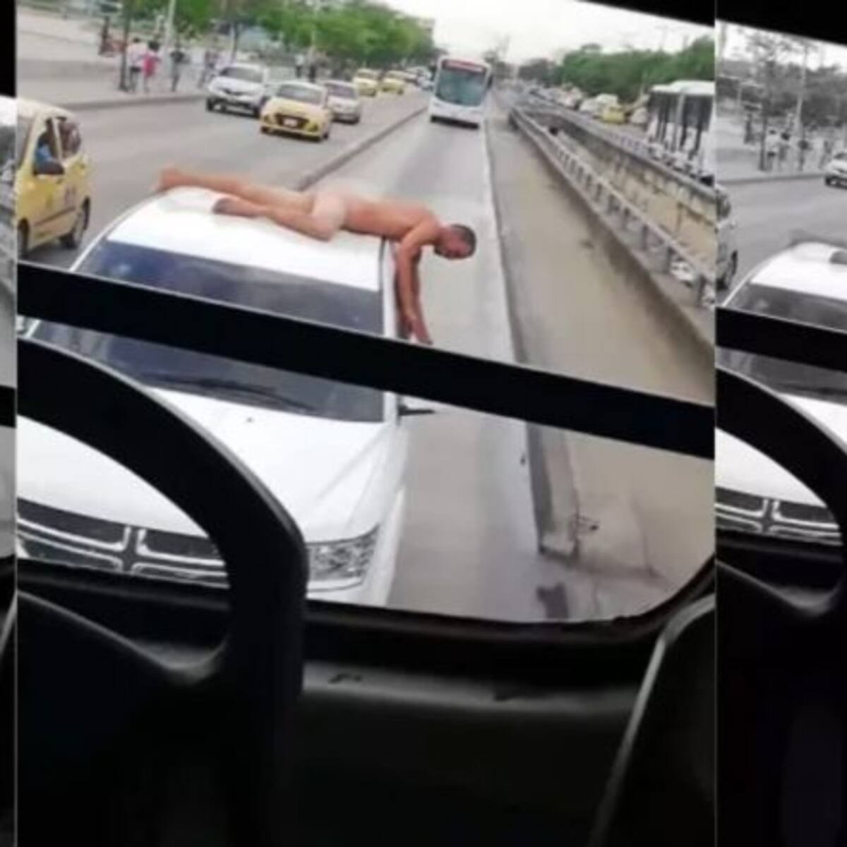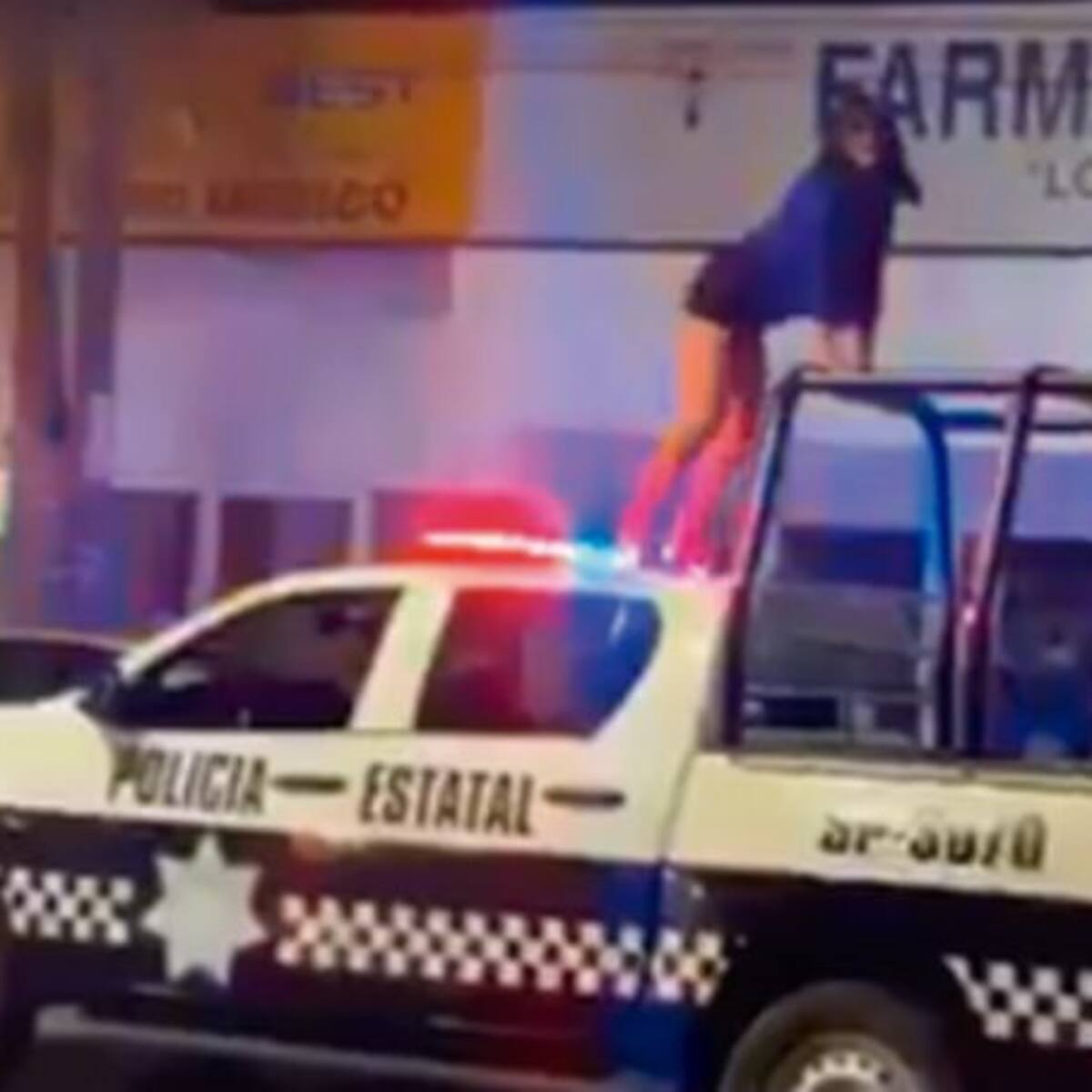 En el video se ve claramente cómo la mujer escala la camioneta hasta llegar al techo, una vez que llegó hasta arriba comenzó a mover el trasero